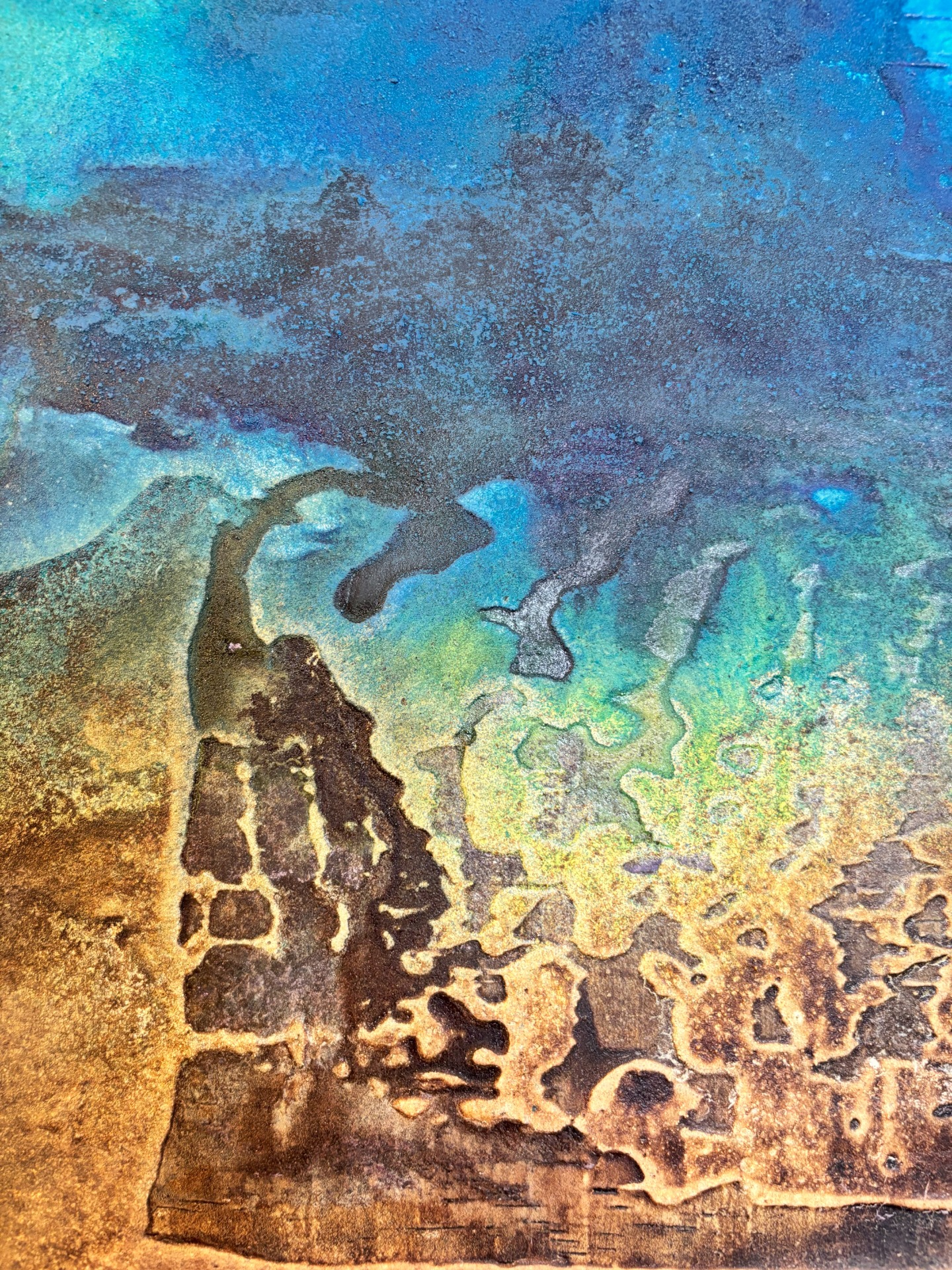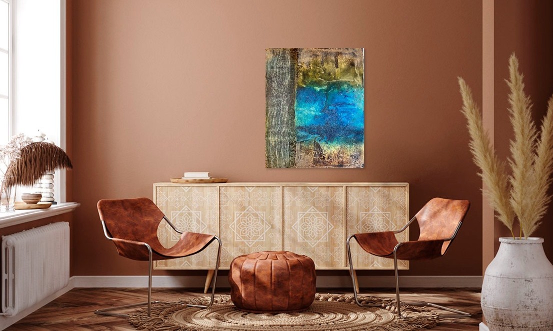 Størrelse 50X60 med 2 cm svart kant. Strukturpasta