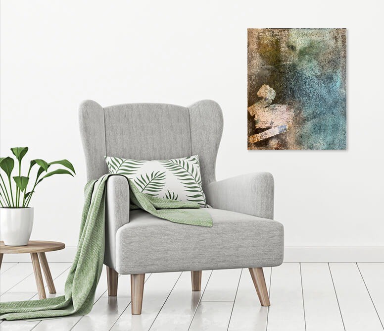 Størrelse 50X60 med 2 cm svart kant. Krakeleringer.